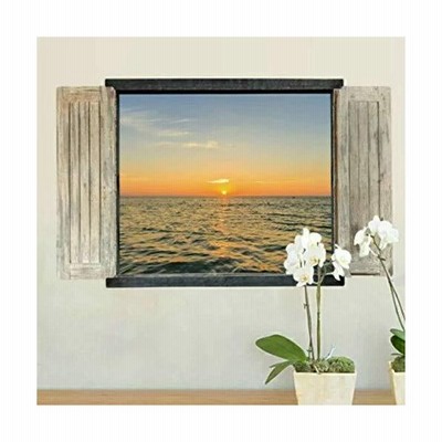 Amazon Co Jp ウォールステッカー 窓 海 南国 ビーチ 風景 おしゃれ シール お風呂 壁紙 壁の穴 レンガ トリックアート ヤシの木 トイレ かわいい インテリア 壁飾り 夕日 空 大きい 夏 窓の景色 波 砂浜 Diyシール ハワイ ハワイアン サーフ 西海岸 アメリカン
